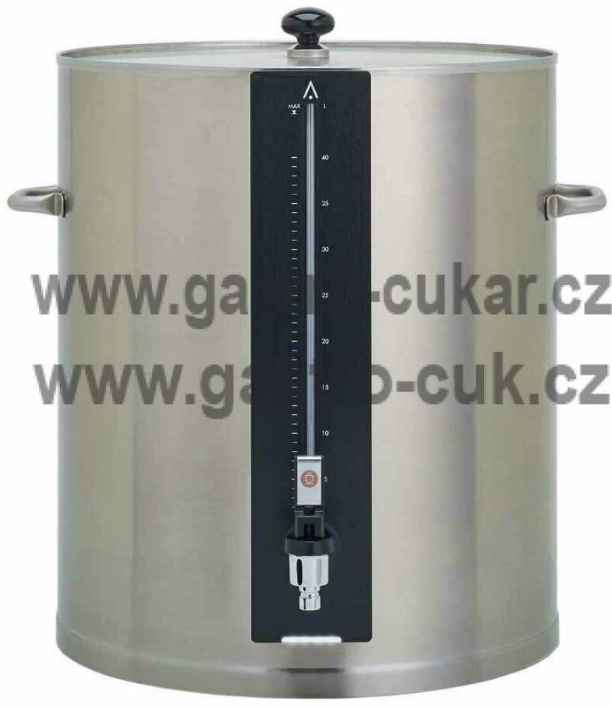 Elektrický udržovací termos 40L. Provedení: celonerzové s víkem, elektrický ohřev (aut.udržení na teplotě 80-85°C), automatický nekapající kohout, vodoznak s ryskou a ergonomická madla Univerzální použití : využití jako udržovací termos s elektrickým vytápěním...