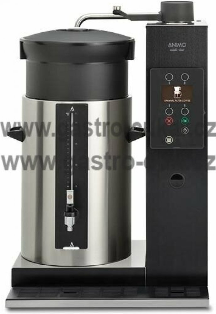Zařízení Animo ComBi-linie nabízejí možnost připravovat velké množství kávy a čaje v krátkém čase. Výroba horké vody je prováděna v kontinuálních průtokových ohřívačích, které dávkují vodu do jednoho, nebo dvou zásobníků vybavených speciálním filtrem. Kávovary mohou být umístěny na pracovním stole, nebo na speciálním servírovacím vozíku. Vždy lahodná překápávaná káva, nebo čaj, každý vydaný šálek kávy nebo čaje chutnat jako právě připravený. Combi řada je založena na systému rychlého filtrování přes papírový (permanentní filtr) s kávou je vložen do speciálního syntetického držáku). Vyrobená horká voda je dávkována otočným ramenem a prochází přes filtr s kávou do izolovaného udržovacího výdejního zásobníku vybaveného hladinoměrem s ryskou náplně a automatickým nekapajícím výdejním kohoutem. Příplatkové příslušenství (nerezový filtr na čaj, permanentní filtr na kávu, prodlužovací nástavce na kohout, konvice). Snadné ovládání pomocí LC-displeje, automatické přerušení cyklu při odebrání zásobníku, snadné programovatelné řízení, regulace udržovací teploty vyrobeného nápoje (automaticky), vybaven čistícím programem, počítadlo denního a celkového výdeje, signalizace stavu náplně na vodoznaku zásobníku, automatický nekapající kohouty zásobníků. Pevné připojení vody 3/4”, přepad hadičkou Ø 25mm.