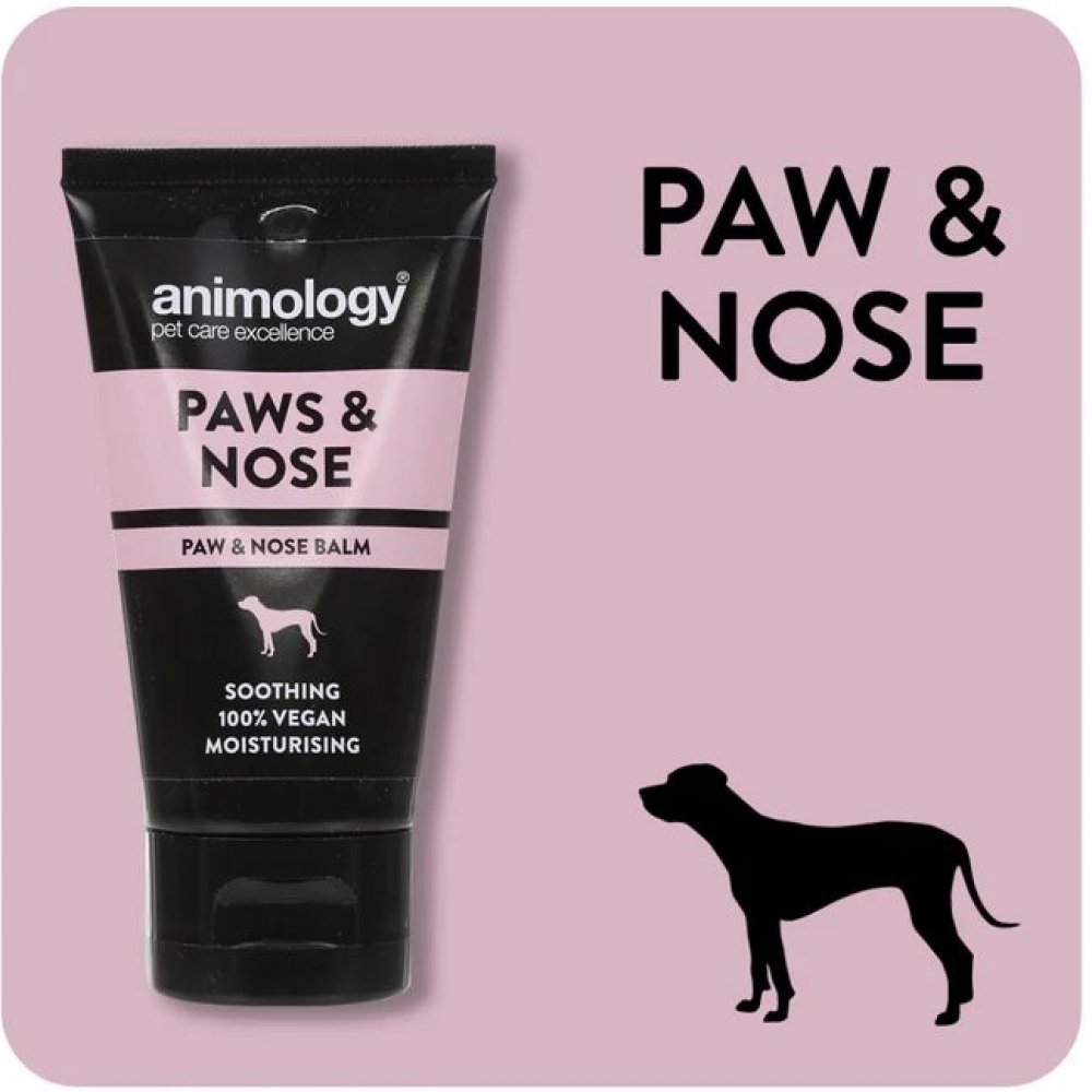 Balzám Paws & Nose od Animology je komplexní směsí oleje ze sladkých mandlí, jojobového vosku, bambuckého másla, ovesného oleje a vitamínu E, která napomáhá zvlhčovat a zklidňovat psí čumák a tlapky. Balzám je méně tuhý než běžné balzámy, což umožňuje jeho uchovávání v praktické tubě. To zjednodušuje aplikaci a pomáhá předcházet kontaminaci produktu znečištěnýma rukama.
