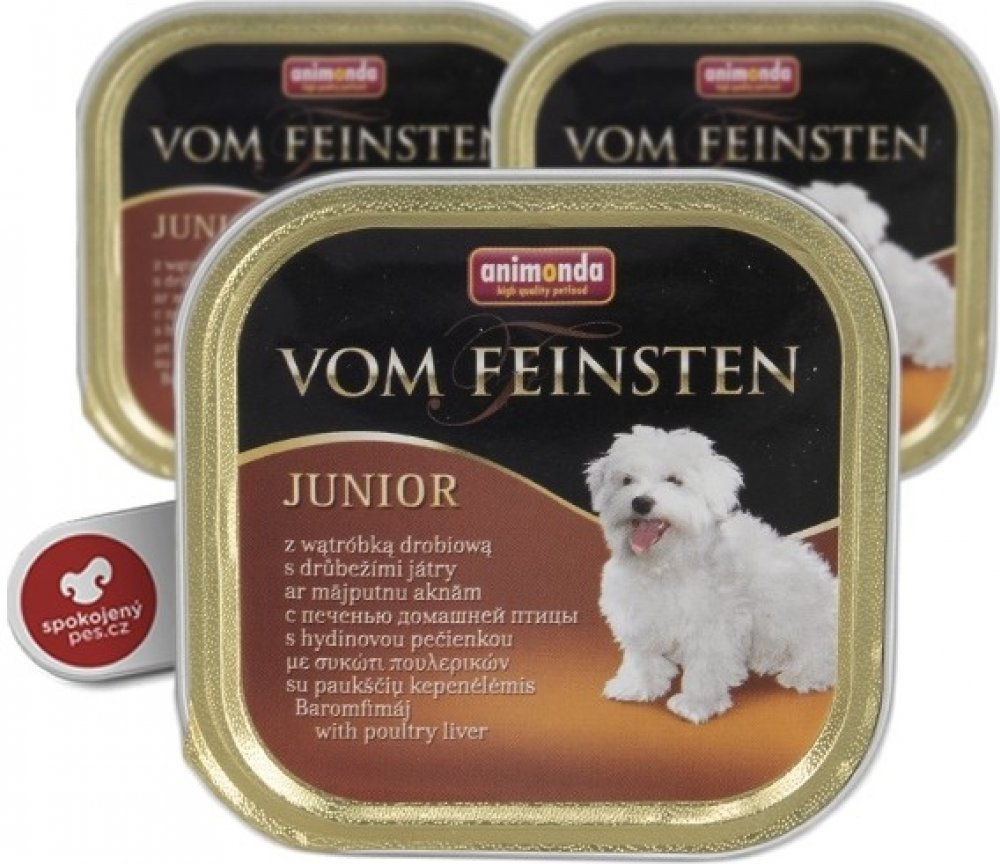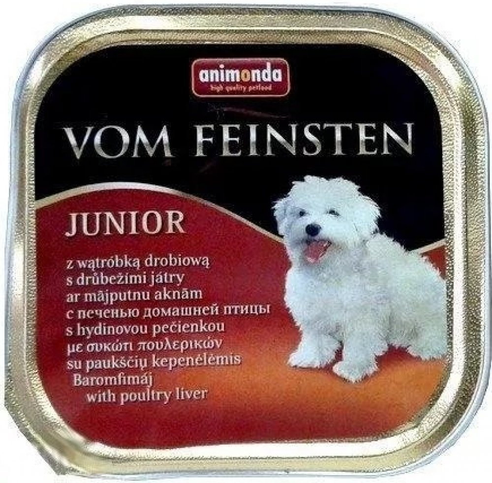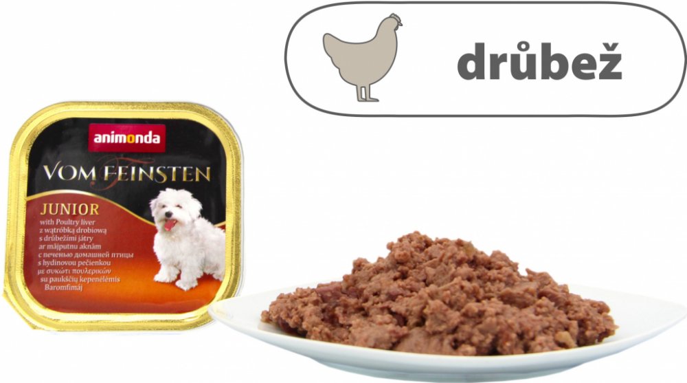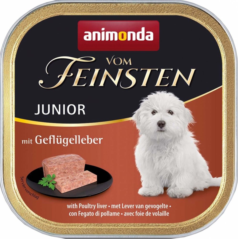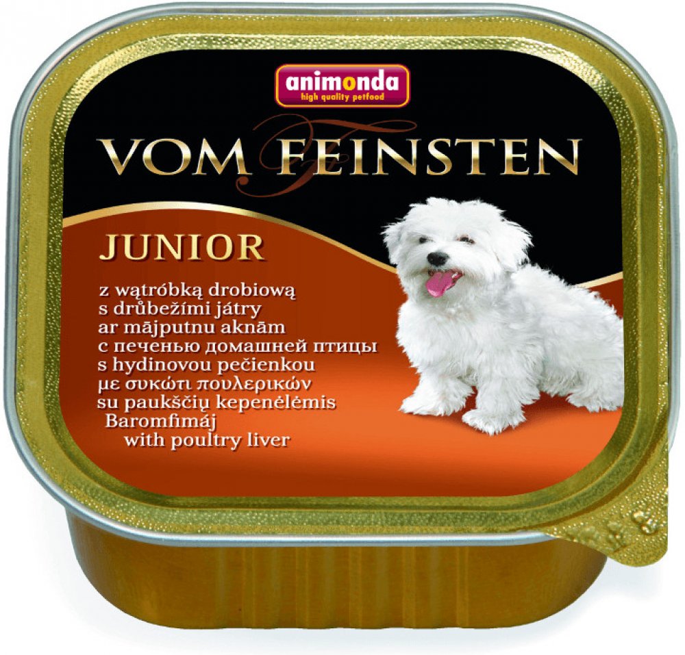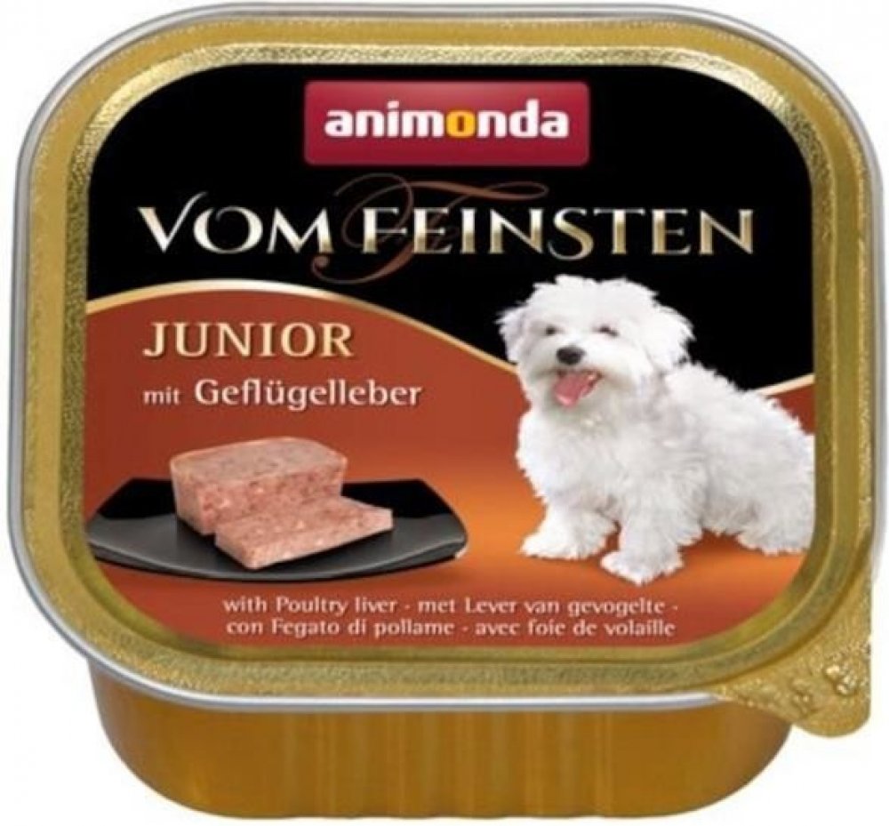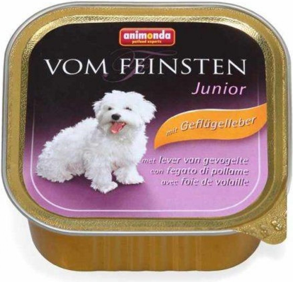 Vom Feinsten Junior - drůbeží játra představuje masovou paštiku chutné, zdravé a vyvážené stravy na nejvyšší úrovni pro rostoucí štěňata v prvním roce života. Toto jemné gurmánské paté je speciálně přizpůsobeno nutričním požadavkům rostoucích štěňat.