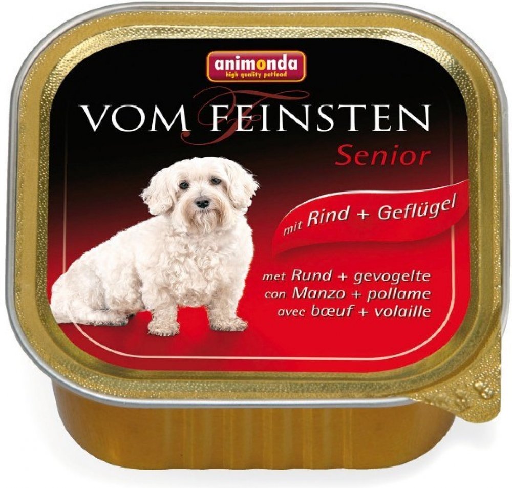 Animonda vom Feinsten Senior je chutné mokré krmivo pro psy od 7 let, které je vyrobeno z pečlivě vybraných druhů masa nejvyšší kvality. Krmivo neobsahuje obilí ani sóju, protože tyto látky jsou často spoušťěčem alergií a nesnášenlivostí. Konzerva je také ideální pro nutričně citlivé psy. S Animonda Vom Feinsten Senior váš pes dostane přesně to, co potřebuje - kvalitní, potřebné, živočišné bílkoviny, které jsou dobře a snadno stravitelné. Zásadně neobsahuje přidáná umělá barvia a konzervační látky. Masová paštika s hovězím 30 % a kuřecím 10 % masem. Lahodná a chutná speciálně navržena pro psí seniory.