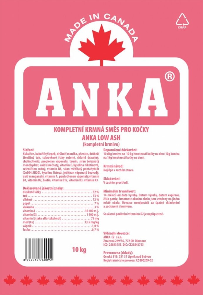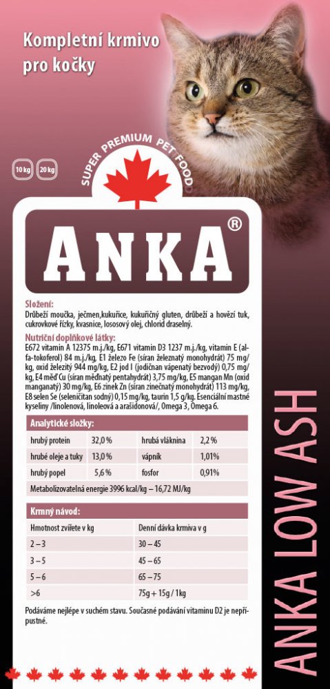 Potrava, kromě jiných přísad, je složena z vysoce kvalitních druhů kuřecích proteinů a tuků. ANKA LOW ASH zajišťuje vyrovnanou výživu se snadnou stravitelností a zažíváním, ideální pro stavbu těla a zároveň spokojenost z jídla.