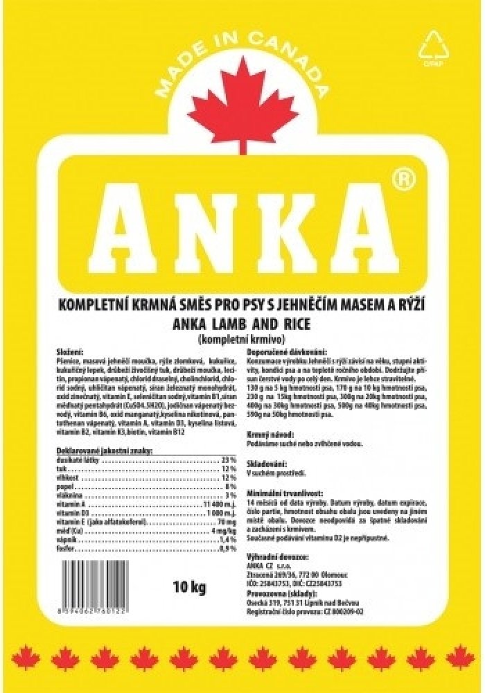 Některá plemena nebo i dlouhodobě léčení psi mohou mít velmi sensitivní zažívací orgány. Pro tyto případy ANKA LAMB AND RICE nabízí svůj prvotřídní výrobek Jehněčí s rýží. Tento výrobek neobsahuje hovězí, vepřové ani kuřecí bílkoviny (a jako všechny ostatní výrobky ANKA neobsahuje ani tato sojové boby, mléčné výrobky, barviva ani vůně). Na základě doporučení veterinárních lékařů výrobek obsahuje pouze jehněčí maso a rýžovou mouku. ANKA LAMB AND RICE je vhodná nejenom pro psy s negativními reakcemi na určitou potravu a pro plemena s citlivým zažívacím ústrojím, ale ANKA Jehněčí s rýží je doporučena i psům s kožním onemocněním.