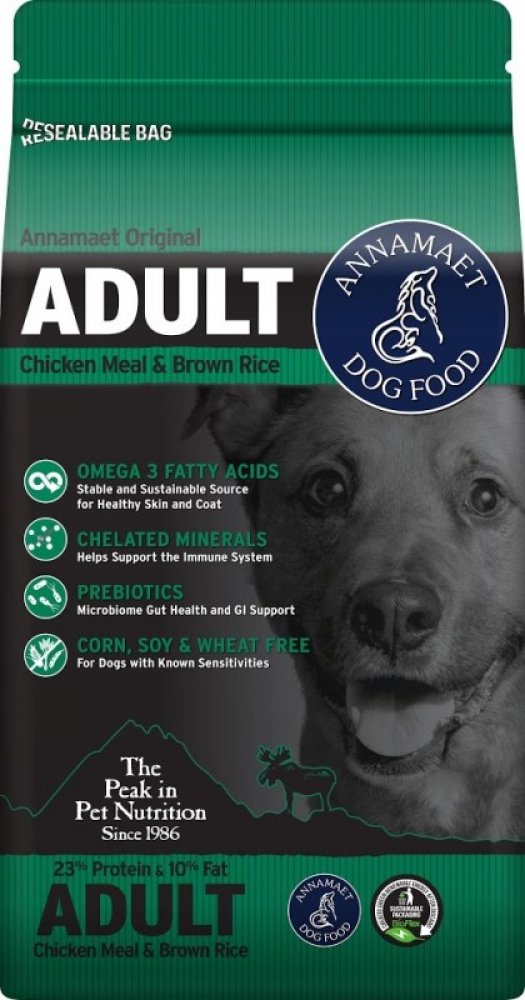 Annamaet Petfoods bez omezení věku pro všechna plemena s nízkou aktivitou kuřecí Annamaet 2.27 kg superprémiové suché Original Adult 23 % rýže 2,27 kg z USA nízká (<200 mg) 10 % 4 % 1.33 % 1.03 % 7.5 % standardní standardní (<25%) standardní základní snadný přechod aktivní (probiotika) možné částečná (země výroby)