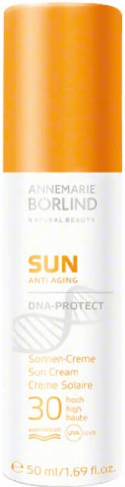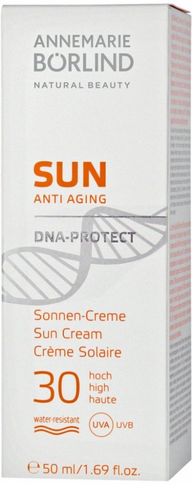 Voděodolný přírodní protistárnoucí opalovací krém DNA Protect s ochranným faktorem SPF 30 od přírodní kosmetiky ANNEMARIE BÖRLIND poskytuje pokožce vysokou ochranu před slunečním zářením a zároveň aktivní ochranu kožních buněk až na úrovni DNA.