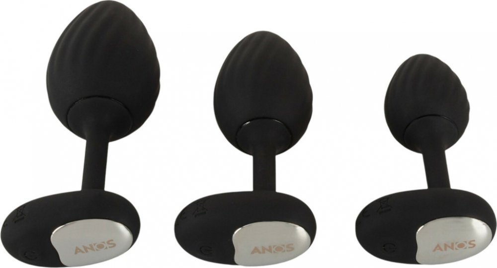 Trojitá rozkoš v jednom balení – objev sadu vibračních análních kolíků ANOS a užij si postupné potěšení, které s každou velikostí zvedá úroveň radosti na novou úroveň!Proč je sada vibračních análních kolíků ANOS skvělá?Sada ANOS RC Butt Plug je perfektní volbou pro všechny, kteří chtějí kombinovat hýčkání prostřednictvím vibrací a anální trénink. Sada obsahuje tři vibrační anální kolíky různých velikostí, které postupně rozšiřují a stimulují oblast konečníku. 10 různých vibračních módů u každého kolíku zajišťuje rozmanité zážitky, zatímco praktické dálkové ovládání (s dosahem 5 m) umožňuje, aby hru ovládal váš partner. Vodotěsný design otevírá nové dimenze – užijte si vibrace ve sprše nebo ve vaně!Proč zákazníci milují sadu vibračních análních kolíků ANOSTři různé velikosti – pro postupné trénování a přizpůsobení zážitkům.10 vibračních módů na všech třech kolících – od jemné po intenzivní stimulaci.Ovládání pomocí dálkového ovládání s dosahem až 5 metrů – ideální pro párové hry.Flexibilní, kónický tvar – snadné vkládání a pohodlné nošení.Reliéfní textura pro hlubokou a zvýšenou stimulaci.Bezpečnostní základna s kovovým dekorem – elegantní vzhled a bezpečné použití.Hedvábný, k pokožce šetrný silikon – příjemný na dotek a hygienicky čistitelný.Vodotěsné provedení – lze použít ve vaně nebo sprše.Dobíjecí pomocí USB kabelu, takže je vždy připraven pro další dobrodružství.Obsah balení3 vibrační anální kolíky ANOS (ve velikostech S, M, L)1 dálkové ovládání (ben potřebná 1 x AAA baterie, není součástí)1 USB nabíjecí kabelNávod k použitíVlastnosti produktuBarva: černáMateriál: silikon, ABSCelková hmotnost: 139 gPočet vibračních módů: 10 na všech třech kolícíchDosah dálkového ovládání: cca 5 mNabíjení: pomocí USB kabelu (součástí)Baterie pro dálkové ovládání: 1 x AAA (není součástí)Vodotěsnost: anoRozměryMalý kolík (S): celková délka 9,3 cm, zasunutelná délka 7,3 cm, maximální průměr 3 cmStřední kolík (M): celková délka 10,3 cm, zasunutelná délka 8,3 cm, maximální průměr 3,5 cmVelký kolík (L): celková délka 11,6 cm, zasunutelná délka 9,6 cm, maximální průměr 4 cmJak používatZačněte s nejmenším kolíkem a použijte dostatečné množství lubrikantu na vodní bázi. Jemně vložte a poté zapněte vibrace pomocí tlačítka nebo dálkového ovládání. Jakmile jste si na pocit zvykli, můžete postupně přejít na větší velikosti. Reliéfní tvar nabízí extra stimulaci při každém pohybu, zatímco kovová ozdobná základna zajišťuje, že budete vždy v bezpečí.OvládáníKolíky lze ovládat jednotlivě přímo tlačítkem, nebo pomocí dálkového ovládání až na vzdálenost 5 metrů. Snadno přepínejte mezi 10 různými vibračními módy, takže při každém použití objevíte nový zážitek.Nabíjecí připojeníVšechny tři vibrační kolíky jsou dobíjecí pomocí přiloženého USB kabelu. Jednoduše připojte do nabíjecího portu a počkejte, dokud se plně nenabijí. K dálkovému ovládání je potřeba 1 x AAA baterie (není součástí).Na co dávat pozor při používání sady vibračních análních kolíků ANOS:Vždy používejte lubrikant na vodní bázi, abyste zachovali integritu silikonového materiálu. Po použití kolíky vyčistěte vlažnou vodou a jemným mýdlem nebo čističem na erotické hračky. Nikdy nepoužívejte na podrážděnou pokožku a dodržujte zásadu postupného navykání. Sada vibračních análních kolíků ANOS je perfektní volbou pro začátečníky i pokročilé – tři velikosti, deset vibračních módů, nekonečná radost!