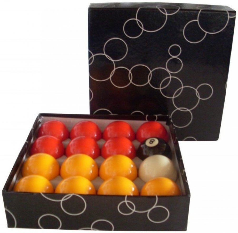 - klasický průměr koulí 57,2 mm, barva žlutá a červená
