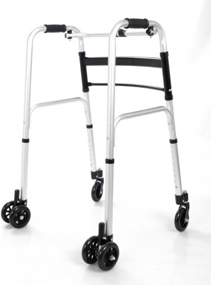 Krokovací chodítko pro seniory s kolečky je určeno pro lidi s problémy s vertikalizací, s onemocněním pohybového aparátu nebo pro lidi s problémy s udržením rovnováhy při chůzi. Zdravotní čtyřbodové chodítko pro seniory poskytuje uživateli oporu a riziko převrácení. Výrobek bude dobře fungovat při učení chůze nebo po úrazech. Při stlačení chodítka směrem dolů se chodítko bezpečně zapře do nožek, tedy neujíždí. Při nadzvednutí je pohyb ulehčen pomocí koleček.VLASTNOSTI vyrobeno z vyztuženého hliníku vybaveno 4palcovými otočnými předními koly a 4palcovými zadními koly snadné skládání a přeprava, skládání jedním tlačítkem 8 úrovní nastavení výšky ergonomické rukojeti z PVCTECHNICKÉ PARAMETRYVýška: 85-102,5 cm, 8 stupňů nastavení, každých 2,5 cmŠířka mezi držadly: 42 cmŠířka: 63 cmŠířka po složení: 12 cmKola: 4''Maximální hmotnost uživatele: 110 kgHmotnost: 3,75 kg