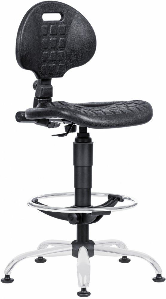 Polyuretanová dílenská židle 1290 PU se synchronním mechanismem. Dílenská židle 1290 PU se synchronním mechanismem je navržena pro maximální pohodlí a efektivitu v pracovním prostředí. Synchronní mechanismus zajišťuje simultánní nastavení úhlu sedáku a opěráku, což podporuje správnou ergonomii při dlouhém sezení. Výška opěráku je snadno nastavitelná pomocí funkce up-down, a plynový píst umožňuje přesné nastavení výšky sedu dle individuálních potřeb. S nosností až 130 kg (nebo 140 kg s chromovým křížem) je tato židle odolná a robustní, ideální pro dlouhodobé používání v náročných podmínkách. K dispozici jsou varianty s kolečky, kluzáky a možností kruhu na nohy, což zvyšuje flexibilitu použití. Vyrobena v České republice, je garantována kvalita a precizní zpracování. Židle se dodává s 24měsíční zárukou, což potvrzuje její spolehlivost a dlouhou životnost. Perfektní volba pro každého, kdo hledá funkční, ergonomickou a odolnou dílenskou židli.