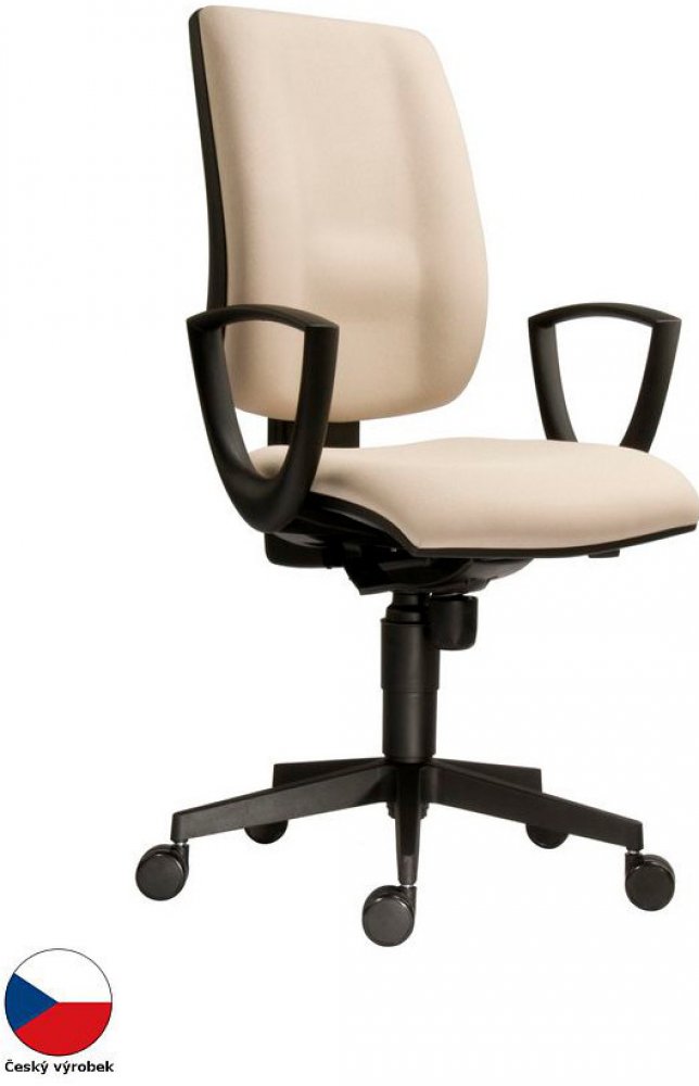 Standardně se dodává s kolečky na koberec, nebo pogumovanými na tvrdou podlahu. Vybrat ve stejné cenové relaci si můžete také mezi dvěma typy područek a to pevnými, nebo výškově nastavitelnými.