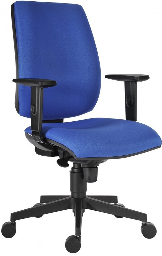 Výškově nastavitelný opěrák si snadno posunete tak, aby podpíral správnou část zad. Pevné područky stabilizují paže při jemné manuální práci, psaní i práci s nářadím – tím uleví šíji a ramenům a pomáhají předcházet přetížení.