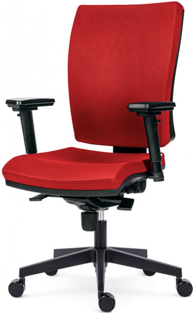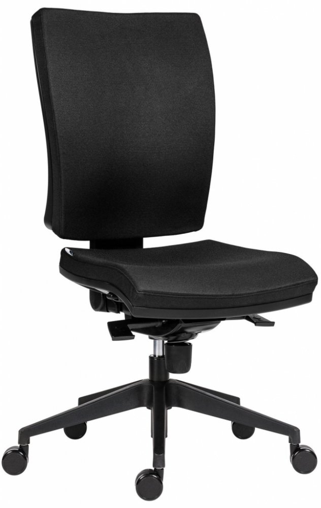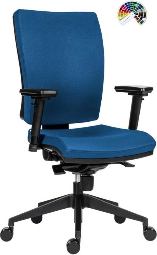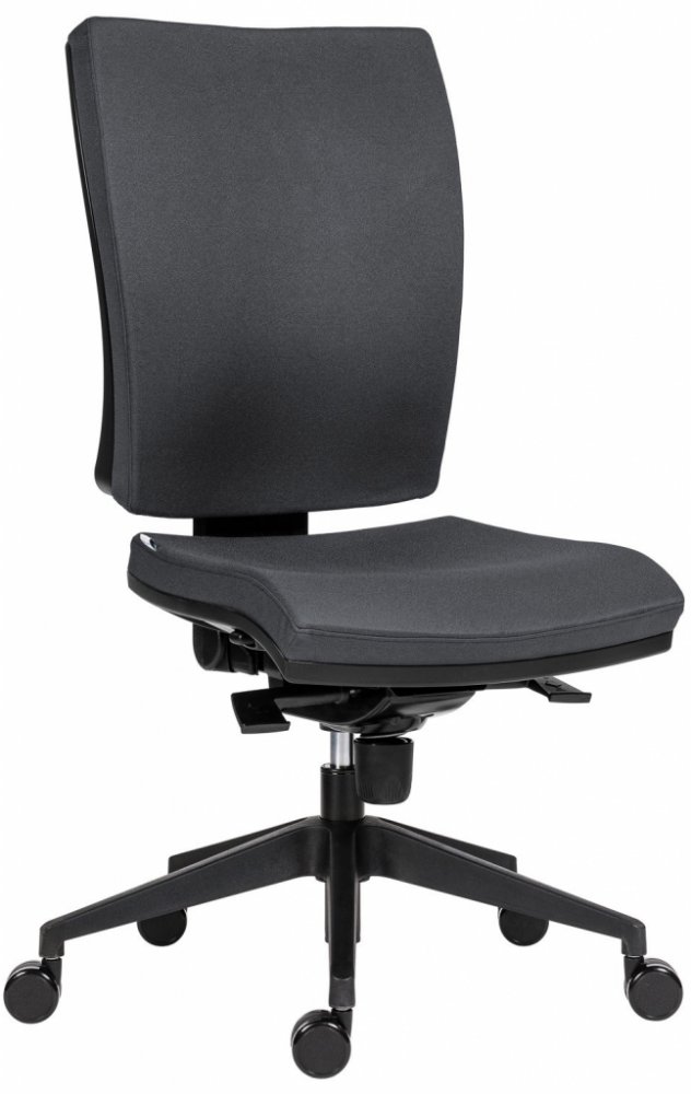 Anatomicky tvarovaný opěrák židle SYN Gala nabízí významnou podporu v bederní oblasti. Speciální boční vedení poskytuje stabilitu a komfort, aniž by omezovalo pohyb. Opěrák lze výškově nastavit a uzamknout v požadované poloze, což umožňuje přizpůsobit jeho polohu přesně podle vaší výšky. Integrovaný bederní přífuk umožňuje regulovat přítlak na bederní páteř, což podporuje přirozené zakřivení zad a zajišťuje maximální komfort. Integrovaný bederní přífuk v opěráku židle umožňuje regulovat intenzitu podpory v oblasti bederní páteře. Tato funkce je ideální pro zajištění správného držení těla a redukci tlaku na bederní obratle, což snižuje riziko bolesti zad a podporuje přirozené držení těla.
