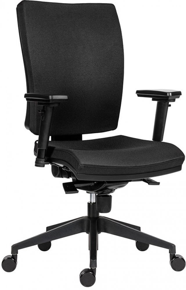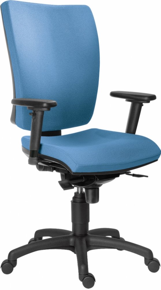 Kancelářská židle značky Antares typ 1580 SYN Gala PLUS. Základní provedení židle: nylonový černý kříž, čalouněný sedák a opěrák v libovolné látce a barvě, plastová kolečka na kobercové podlahy, plynový píst, synchronní mechanika s hloubkovým posuvem sedáku a automatickým nastavení tuhosti, bez područek.Popis produktu 1580 SYN GALA PLUS:Kolečka: Židle osazena plastovými kolečky o velikosti 60 mm, která jsou vhodná pouze na měkké typy podlah (např. koberce). Pokud požadujete kolečka pogumovaná, která jsou univerzální a vhodná i na tvrdé podlahy, zvolíte je v konfigurátoru. Výhodou těchto koleček je, že při jejich použití na tvrdé podlaze: - snížíte valivý odpor samotných koleček proti povrchu podlahy a židle se tak pohybuje plynuleji,- eliminuje se případná možnost poškození podlahové krytiny díky speciálnímu termoplastickému elastomeru na běhounu,- dojde k celkovému zvýšení životnosti jak koleček, tak i podlahové krytiny,- snížení hluku při pohybu na tvrdé podlaze proti základním plastovým kolečkům. Pro ty nejnáročnější uživatele jsou v nabídce ještě specifická kolečka s průměrem 75 mm , zajišťující ten nejvyšší komfort a ticho při pohybu židle na jakémkoliv povrchu.Kříž:Pětiramenný nylonový černý kříž s dostatečně širokou základnou pro maximální stabilitu a oporu. Kříž je kompatibilní s jakýmikoliv kolečky s čepem o průměru 11 mm v délkou 22 mm. Všechna kolečka z naší nabídky jsou kompatibilní s tímto typem kříže.Pístnice:Standardní píst židlový černý s dvojitým konusem. Zdvih 10 cm. Čalounění:Volitelné čalounění v různých barevných provedeních látky dle Vašich požadavků. Mechanika Synchronní základní:Automatický synchronní mechanismus s blokací houpání ve 4 pozicích, automatickým nastavením tuhosti při houpání podle hmotnosti sedícího a hloubkovým nastavením sedáku (5 pozic). Z pozice sedícího se pravou páčkou nastavuje výška sedu, levou přední páčkou se odemyká a uzamyká možnost houpání, případně blokuje sklon sedáku s opěrákem v jedné ze čtyř pozic (úhel naklopení sedáku 0 - 5 a opěráku 0 - 20). Levou zadní pákou se nastavuje hloubka sedáku v rozpětí 0 - 58 mm.Zádová opěrka:Střední velikost s výškovou možností nastavení opěráku mechanismem UP-DOWN. Plynulým zvedáním zádové opěrky dochází ke zvolení požadované výšky a jejímu okamžitému aretování ve zvolené poloze. V okamžiku vysunutí opěrky do maximální polohy sjede opět do nejnižší možné polohy. Poté lze opět nastavit požadovanou výšku. Za příplatek v konfigurátoru možnost osazení zádové opěrky hlavovou opěrkou.Hlavová opěrka:V základním provedení bez hlavové opěrky. Záhlavník s nastavením výšky a náklonu. Čalouněný ve stejné potahové látce a barvě jako sedák s opěrákem. Zvolíte v konfigurátoru.Područky:V základním provedení bez loketních opěrek. V případě zájmu si můžete dokoupit pevné, výškově stavitelné nebo 3D.Doporučení prodejce:Kancelářské křeslo vhodné pro uživatele s výškou do 190 cm a hmotností uživatele do 150 kg. Kancelářská židle vhodná pro celodenní sezení.Pozor: Subjektivní hodnocení našeho odborníka. V případě, že uvažujete o využití kancelářské židle ke každodennímu až 8 hodinovému sezení, je toto křeslo jistě dobrá volba.Dodání zboží:Křeslo je standardně dodáváno v demontovaném stavu v kartónové krabici o hmotnosti cca 18 kg. Balení obsahuje kompletní spojovací materiál včetně ilustračního návodu k montáži. V případě, že se na montáž necítíte, máte možnost si zvolit v konfigurátoru zaslání zboží již ve složeném stavu. Tato služba je však zpoplatněná a termín odeslání zboží se opozdí min. o 1 pracovní den z důvodu kompletace a expresního balení.Časová náročnost složení židle: 10 - 15 minut