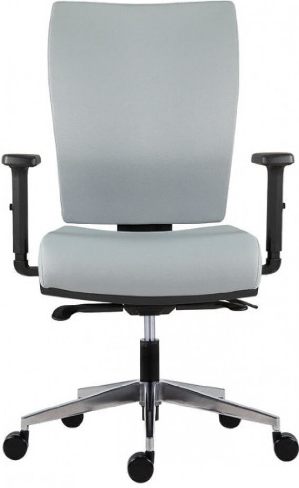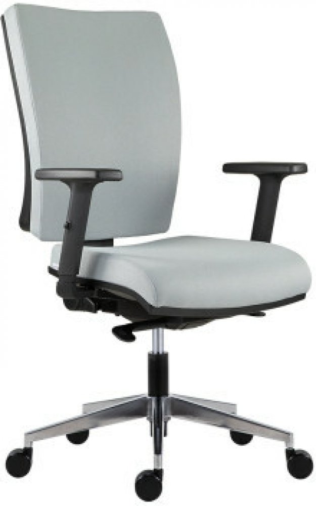 Pracovní otočná kancelářská židle GALA 1580 SYN ALU zaujme svým širokým čalouněným sedákem a opěrákem, který zajišťuje pohodlné sezení. Výplň sedáku a opěráku tvoří studená pěna, která je vyráběna vstřikováním do formy. Tato technologie zaručuje vysokou životnost produktu. Kostru židle tvoří leštěný hliníkový kříž s k
