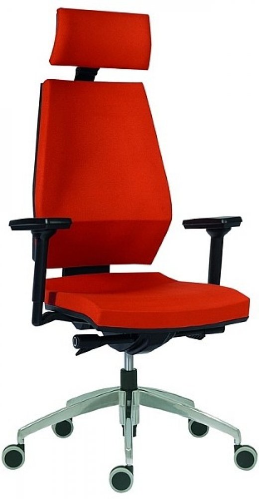 Opěradlo židle je vysoké, ergonomicky tvarované s výraznou bederní oporou a výškově stavitelné pomoci systému up-dowm.