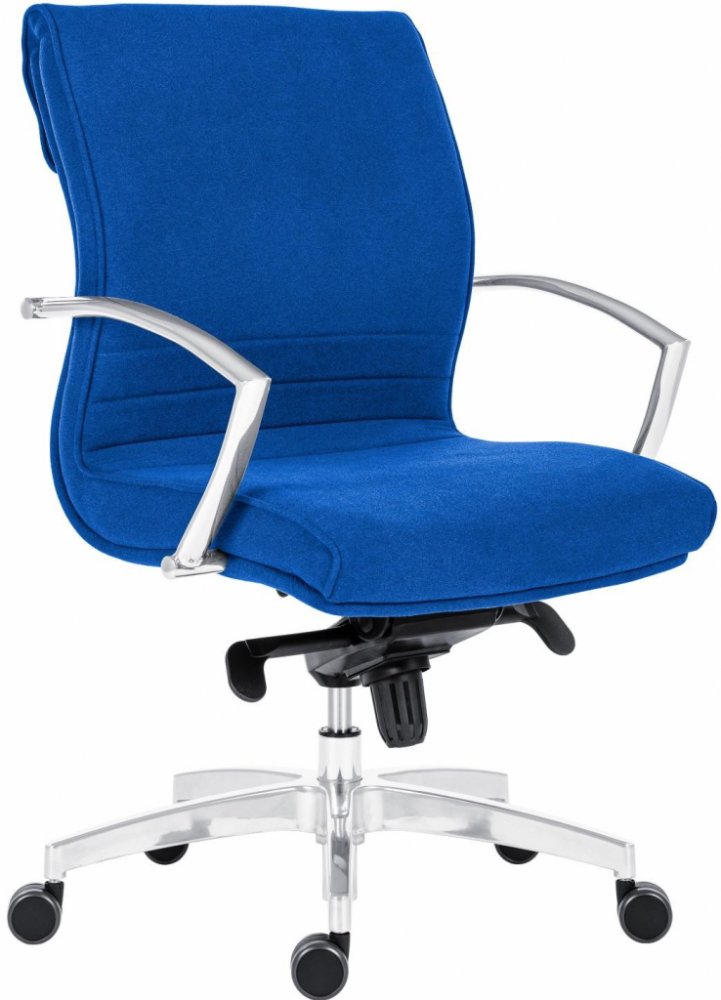 • nízke operadlo • chromované oceľové podrúčky • moderný päťramenný kríž z lešteného hliníka • hojdacia mechanika MULTIBLOCK • kolieska s gumovou obručou s väčším priemerom pre všetky typy podláh