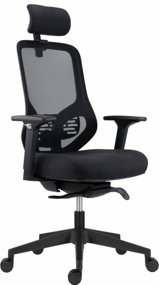 Kancelářská židle se sítí na opěráku, čalouněný sedák a podhlavník