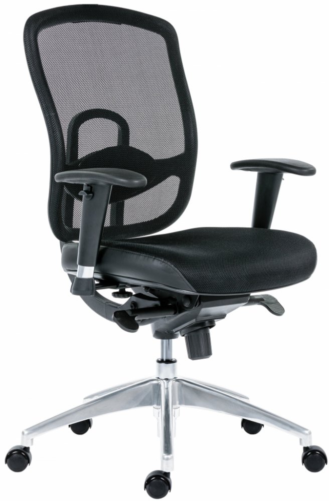 Židle je vybavená synchronní mechanikou s nastavením síly protiváhy a aretací v 5 pozicích.