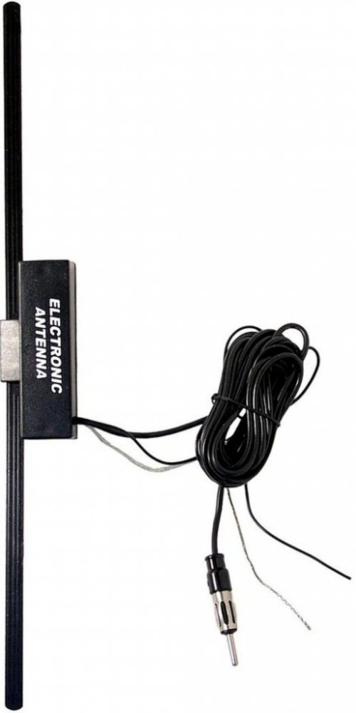 Elektronická anténa určené k montáži nalepením na sklo automobilu. Napájení 12 volt, šířka 34 cm, délka kabelu 200 cm.
