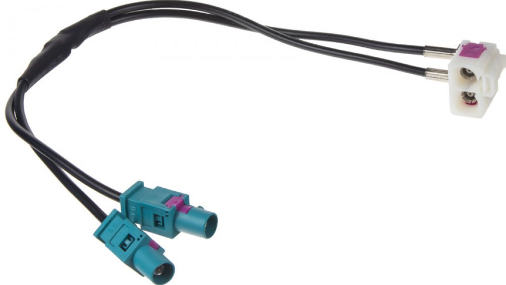 Anténní adaptér pro instalaci autorádia nebo navigace s dvojitým Fakra konektorem do automobilů s dvěmi samostatnými Fakra konektory (použití např. při instalaci nové navigace VW RNS510 do starších vozidel VW).