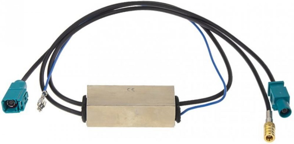 CAR AUDIO > Antény + příslušenství > Anténní adaptéry Anténní rozbočovač FAKRA/SMB pro DAB slouží k k oddělení signálu AM/FM pro připojení DAB rozhlasového příjímače k originálním anténám s konektorem FAKRA.Rozbočovač je pasivní, modrý napájecí drát slouží k napájení vnitřního oddělovače AM-FM/DAB. Technické parametry:• délka kabelu: 345 mm• konektor: DIN samec/ SMB 90°/ DIN samice• zisk: 15-20 dB• V.S.W.R:
