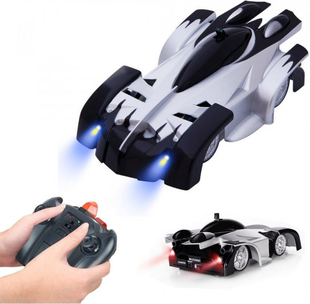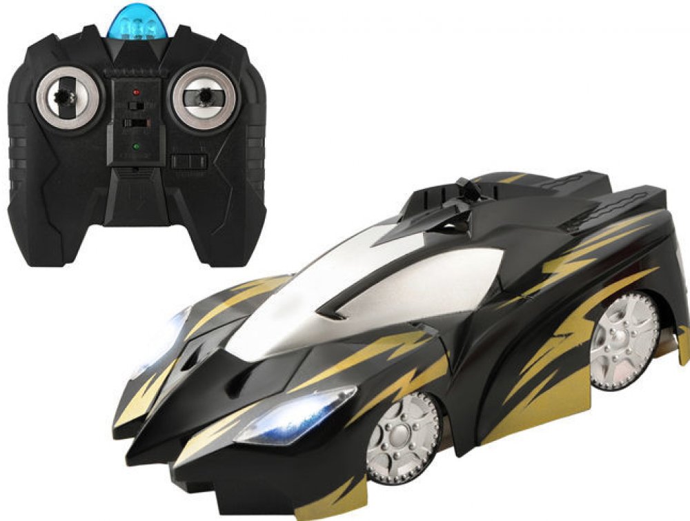 Pravidla slouží k tomu, aby se porušovala. Proč to nezkusit také s gravitací? Pozvěte kamarády a závody začínají. Nejdřív rozjížďka po podlaze a hurá na zeď. Slalom mezi obrazy .... ani strop není překážkou. Autíčko vypadá jako obyčejné autičko na dálkové ovládání. Při bližším průzkumu zjistíte, že má tři možnosti provozu: OFF, FLOOR, WALL. Když chcete, aby jezdilo po stěně, zapněte tlačítko WALL ...