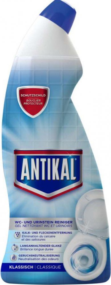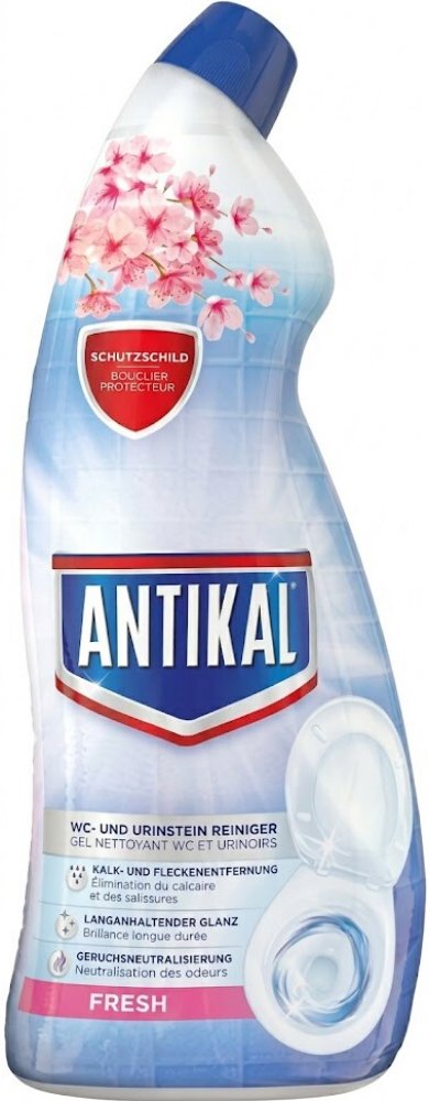 Mnohé běžné WC čističe si poradí pouze s povrchovou špínou a zanechávají vodní kámen bez většího efektu. Často také rychle stékají a jejich účinek je krátkodobý. Antikal Fresh byl vyvinut speciálně pro boj s vodním a močovým kamenem – jeho hustá gelová textura zajišťuje delší kontakt s povrchem a tím i vyšší účinnost. To znamená méně drhnutí a lepší výsledky.
