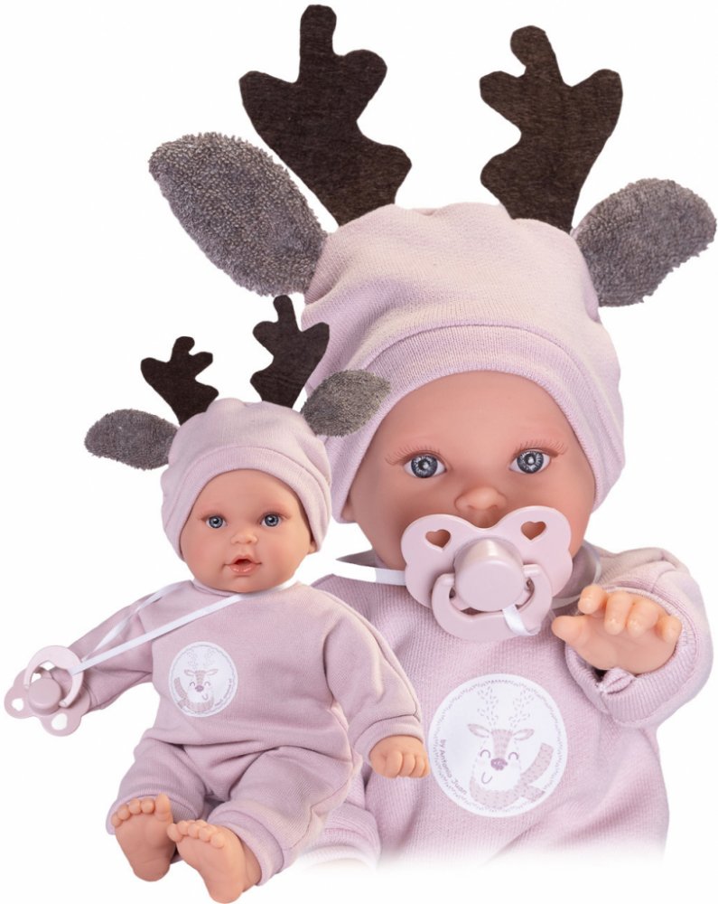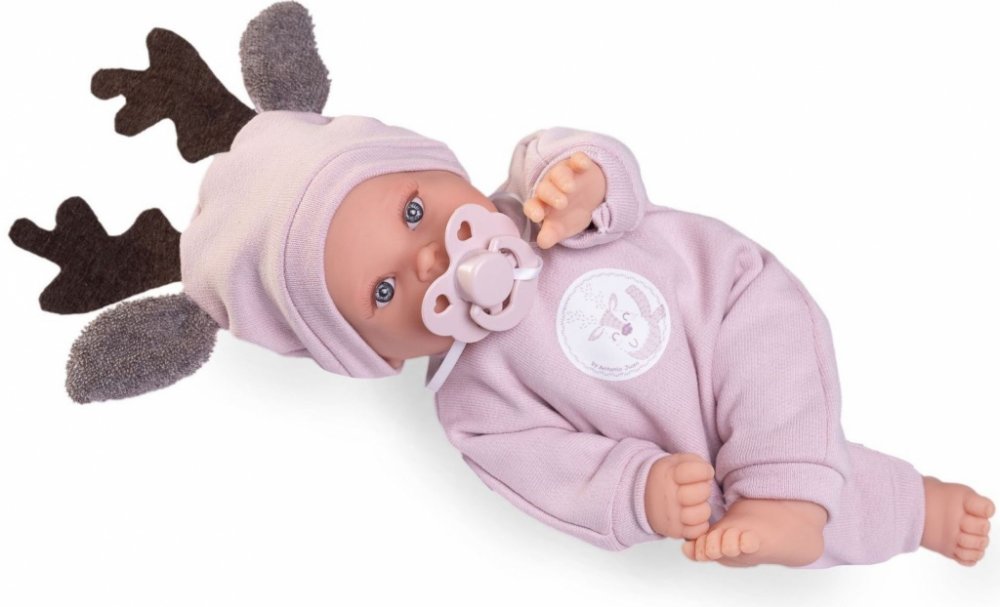 Plačící a mluvící, ručně vyrobená realistická španělská panenka, reagující na magnetický dudlík. Po vytažení dudlíku z úst vydává reálný zvuk plačícího dítěte, který lze utišit opět dudlíkem a říká „mama“, „papa“. Panenka má měkké látkové tělo, hlava a končetiny jsou vyrobené z kvalitního měkčeného vinylu. Oblečení některých panenek bylo vyrobeno z organické bavlny, která zaručuje výrobu z ručně sbírané, ekologicky bez chemického ošetření pěstované bavlny. Firma Antonio Juan klade velký důraz na ekologii a proto jako první využívá v tomto odvětví zmíněnou bavlnu. Velikost 27 cm. Baleno v dárkové krabici. Doporučený věk od 2 let. Součástí balení je 3 x knoflíková baterie LR44 s návodem na její výměnu. Baterie jsou spotřební zboží a proto jejich vybití není důvodem k reklamaci panenky.