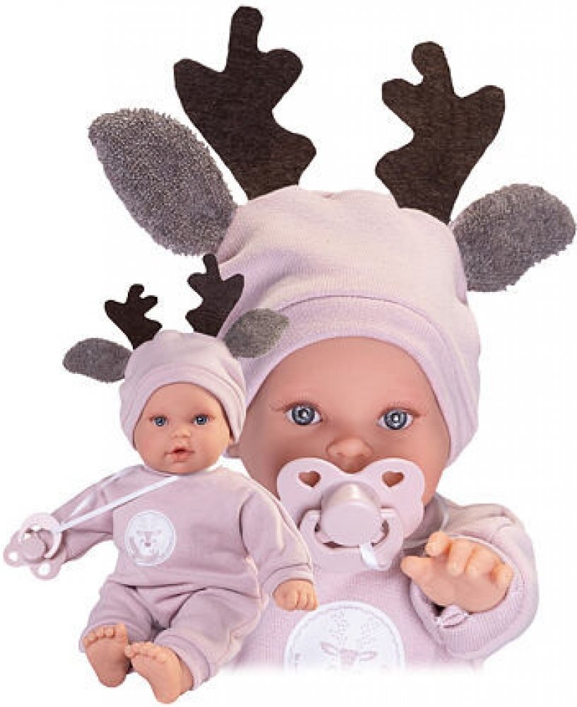 Plačící a mluvící, ručně vyrobená realistická španělská panenka, reagující na magnetický dudlík. Po vytažení dudlíku z úst vydává reálný zvuk plačícího dítěte, který lze utišit opět dudlíkem a říká „mama“, „papa“. Panenka má měkké látkové tělo, hlava a končetiny jsou vyrobené z kvalitního měkčeného vinylu. Oblečení některých panenek bylo vyrobeno z organické bavlny, která zaručuje výrobu z ručně s...