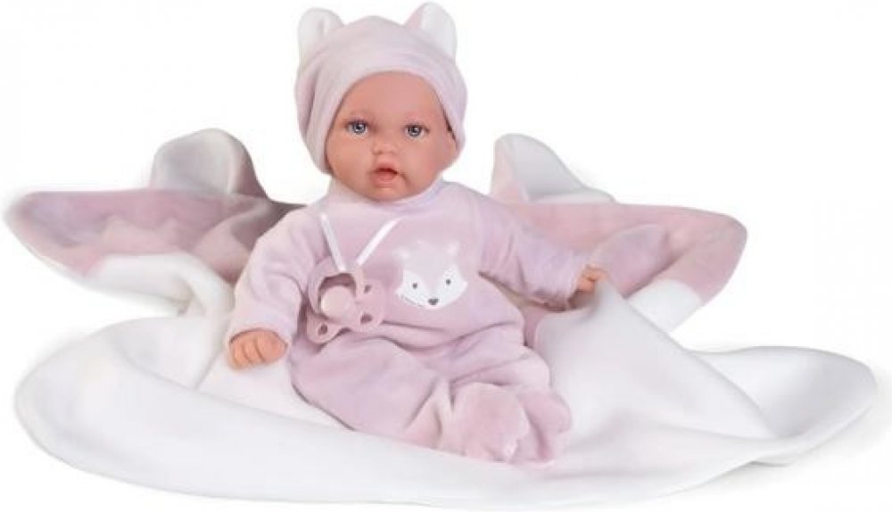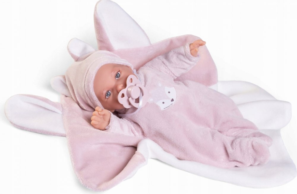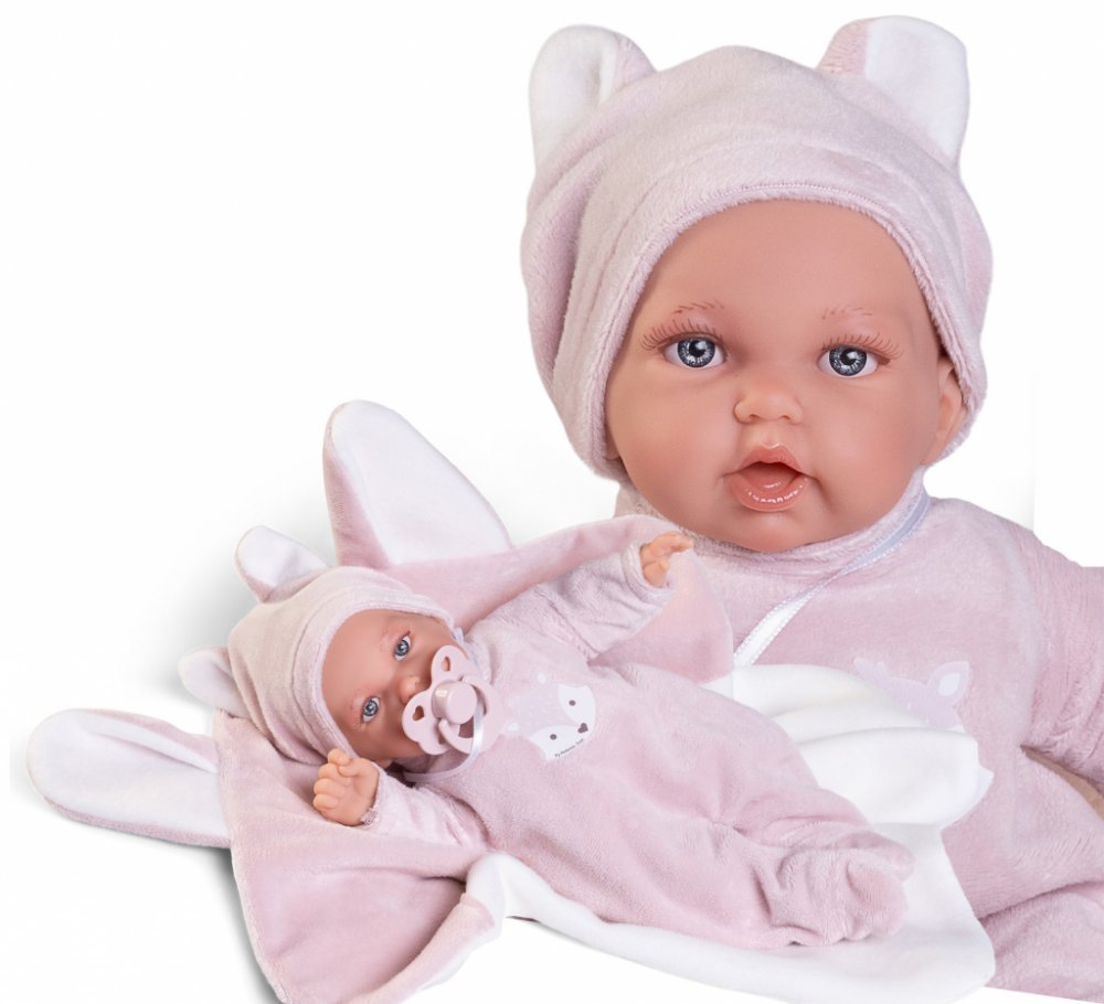Ručně vyrobená realistická španělská panenka s měkkým látkovým tělem. Hlava a končetiny jsou vyrobeny z kvalitního měkčeného vinylu. Oblečení některých panenek bylo vyrobeno z organické bavlny, která zaručuje výrobu z ručně sbírané, ekologicky bez chemického ošetření pěstované bavlny. Firma Antonio Juan klade velký důraz na ekologii a proto jako první využívá v tomto odvětví zmiňovanou bavlnu. Vel...