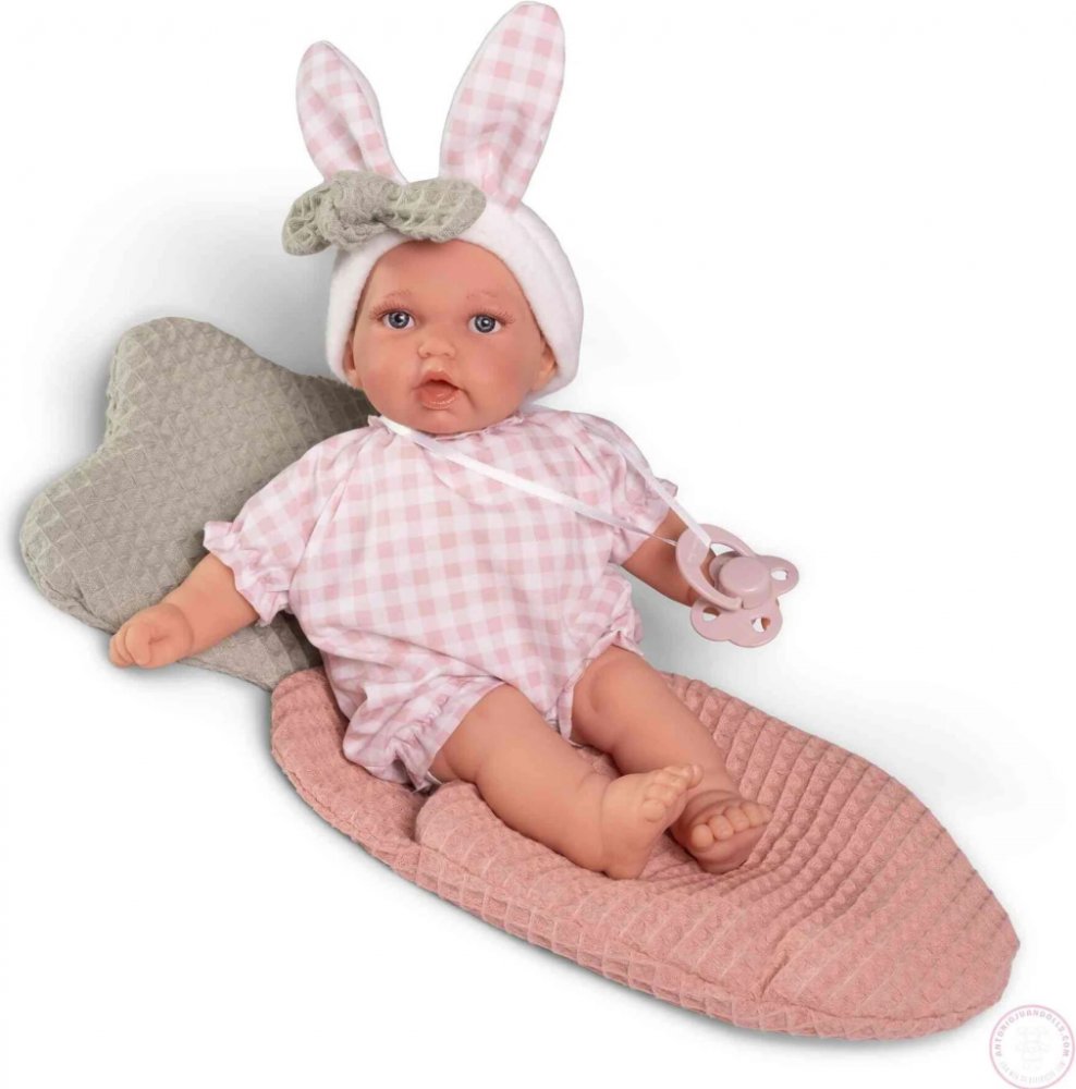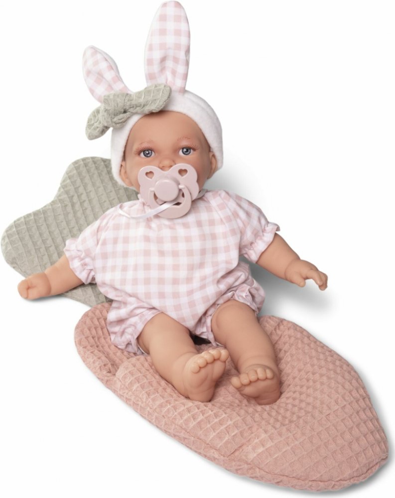 Kika, tvoja prvá bábika. Kika je ideálna spoločníčka pre chlapcov aj dievčatá od 2 rokov. Jej mäkké telo priamo láka na maznanie a jej mäkký fusak ju nežne zahaľuje. Nosí čiapku s ušami a ak jej vezmete cumlík, bude plakať za rodičmi... ale s ním sa raz-dva upokojí! Táto bábika meria 27 cm, čo je ideálna veľkosť na maznanie a nosenie.