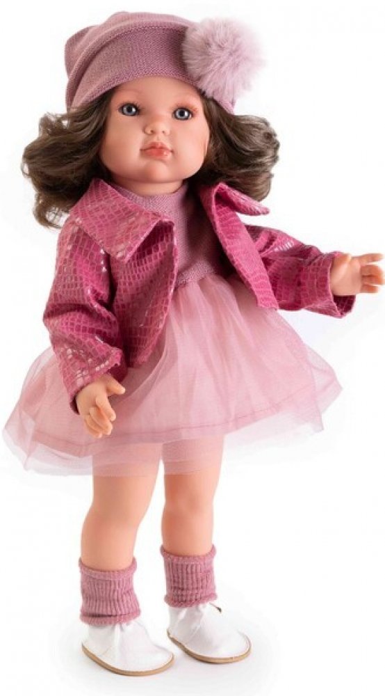 ANTONIO JUAN - 28121 BELLA - realistická panenka s celovinylová tělem 45 cm, Věková kategorie: 3+ Krásná realistická panenka od španělského výrobce Antonia Juana - Bella v tylové sukni je 45 cm vysoká. Celé tělíčko je vyrobeno z kvalitního měkčeného vinylu. Panenka má modré oči a tmavě hnědé delší vlasy. Bella je oblečena do vínové pletené halenky, přes kterou má lesklou růžovou bundu do pasu. Dál...