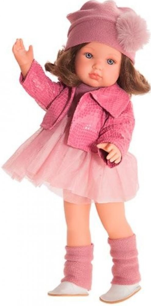 ANTONIO JUAN - 28121 BELLA - realistická panenka s celovinylová tělem 45 cm, Věková kategorie: 3+ Krásná realistická panenka od španělského výrobce Antonia Juana - Bella v tylové sukni je 45 cm vysoká. Celé tělíčko je vyrobeno z kvalitního měkčeného vinylu. Panenka má modré oči a tmavě hnědé delší vlasy. Bella je oblečena do vínové pletené halenky, přes kterou má lesklou růžovou bundu do pasu. Dále má světle růžovou tylovou sukni a na nohách pletené vínové nadkolenky, stejné jako její čepice, která je navíc ozdobena nadýchanou bambulkou. Panenka Bella od španělské firmy Antonio Juan je balena v originální dárkové krabici, splňuje bezpečnostní a zdravotní normy (CE). Doporučeno pro děti od 3 let.