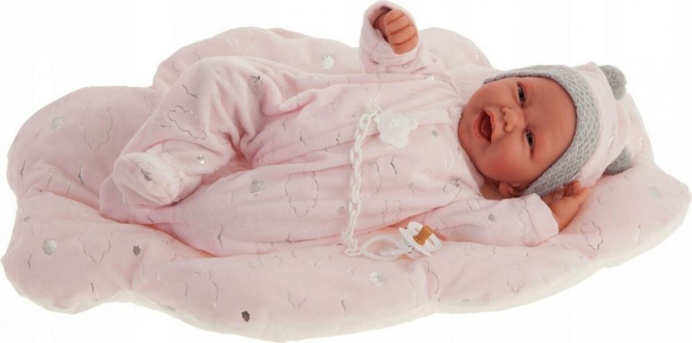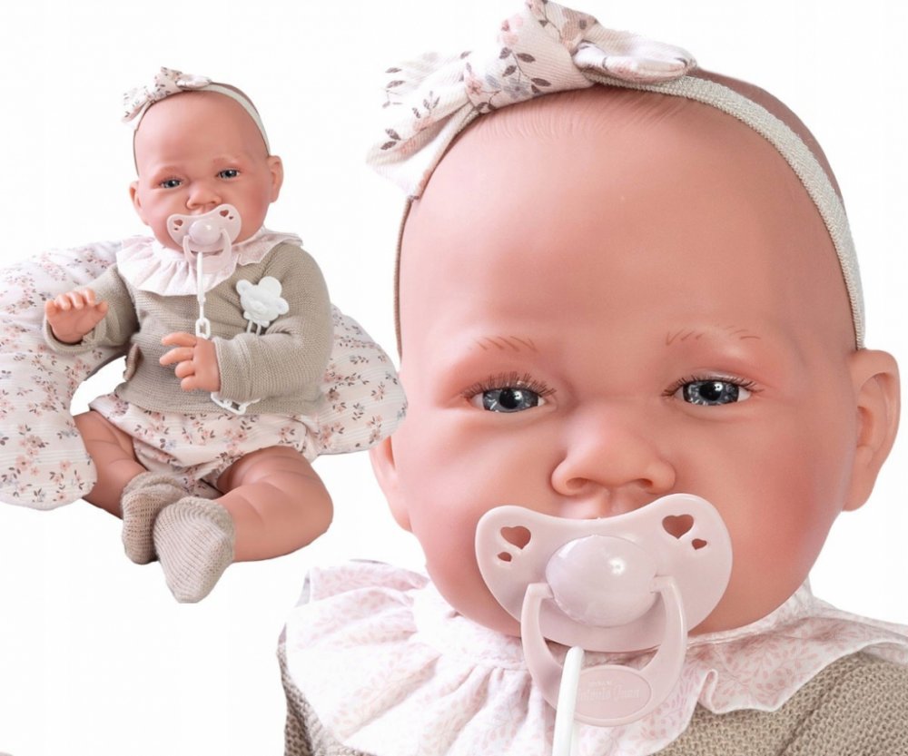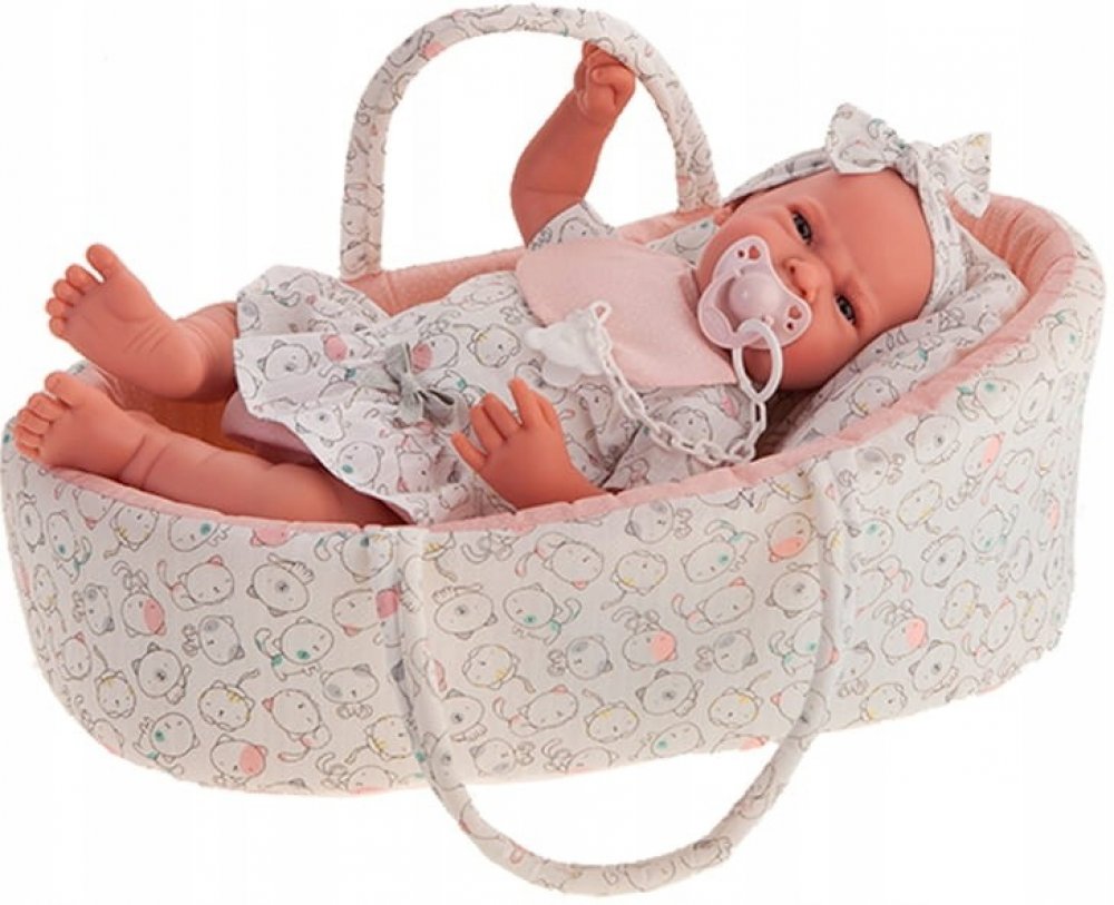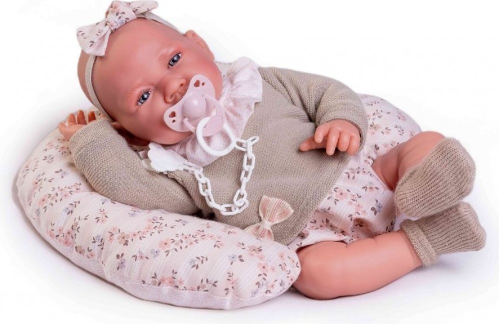 Ručně vyrobená realistická španělská panenka - miminko s realistickými prvky v obličeji a na končetinách. Ruce a nohy jsou k tělu přichycené kloubem s možností polohování, což miminku umožňuje třeba i samostatné sezení bez opory. Panenka má měkké látkové tělo, hlava a končetiny jsou vyrobené ze speciálního měkčeného vinylu, příjemného na dotek. Oblečení některých panenek bylo vyrobeno z organické bavlny, která zaručuje výrobu z ručně sbírané, ekologicky bez chemického ošetření pěstované bavlny. Firma Antonio Juan klade velký důraz na ekologii a proto jako první využívá v tomto odvětví zmíněnou bavlnu. Velikost 42 cm. Baleno v dárkové krabici. Doporučený věk od 3 let.