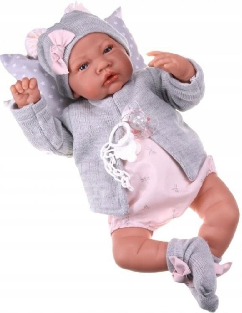 Ručně vyrobená španělská panenka, má měkké látkové tělo, hlava a končetiny jsou vyrobené z kvalitního měkčeného vinylu.