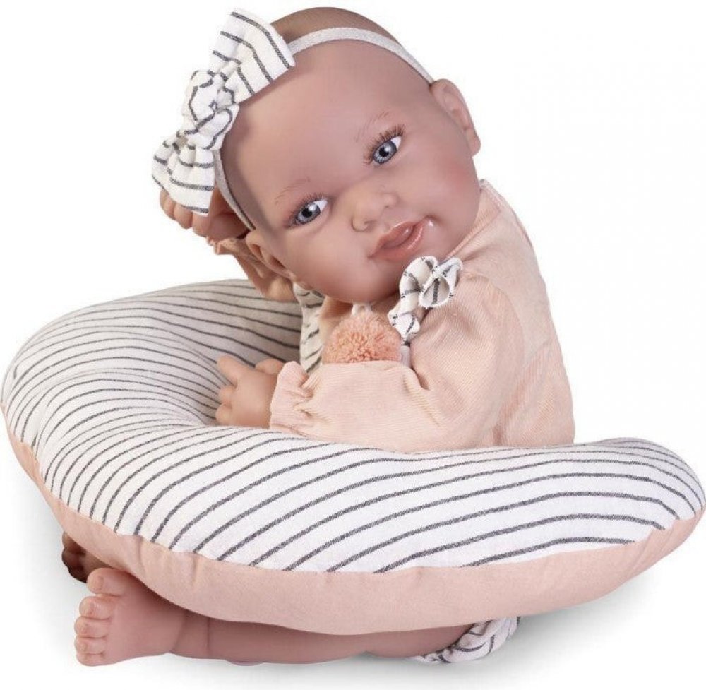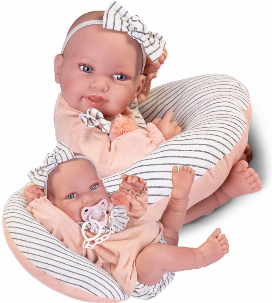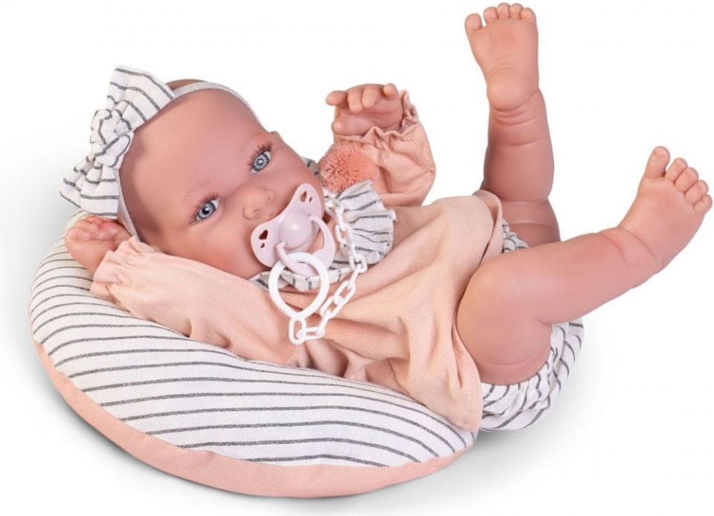 Ručně vyrobená realistická španělská panenka - miminko new born s celovinylovým tělem a realistickým vyobrazením různých miminkovských faldíků a detailů včetně pohlaví. Panenka je vyrobená ze speciálního měkčeného vinylu, velmi příjemného na dotek. Miminko lze koupat, ale je potřeba dát pozor, aby se nenamočily řasy. Odlepené řasy nejsou pak důvodem k reklamaci. Oblečení některých panenek bylo vyrobeno z organické bavlny, která zaručuje výrobu z ručně sbírané, ekologicky bez chemického ošetření pěstované bavlny. Firma Antonio Juan klade velký důraz na ekologii a proto jako první využívá v tomto odvětví zmíněnou bavlnu. Velikost 42 cm. Baleno v dárkové krabici. Doporučený věk od 3 let.