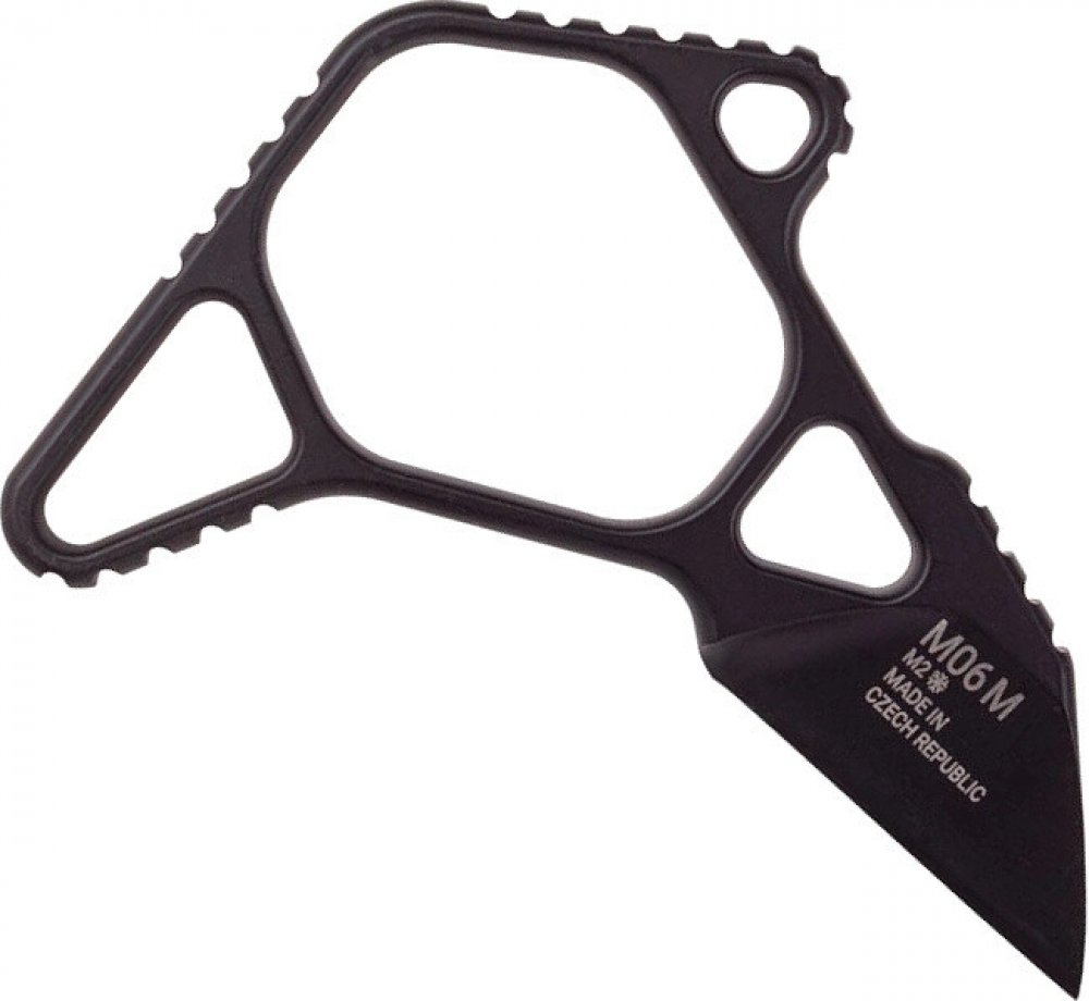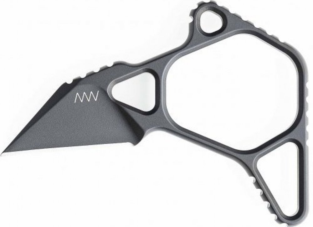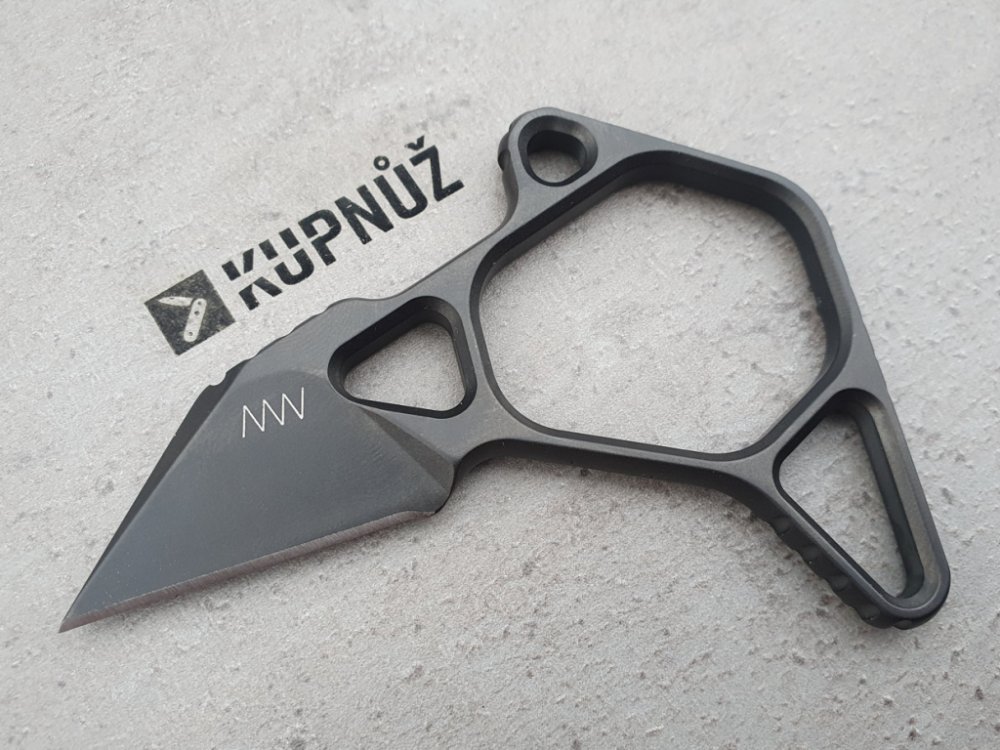 Minimalistický design a maximální funkčnost, to je tlačná dýka v pojetí ANV knives z výborné práškové oceli ELMAX!Dráp M06 je navržen tak, aby jej bylo možné nosit především na odvrácené straně (slabé ruce), aby fungoval jako malý, ale seriózní nástroj s velmi účinnou zesílenou užitkovou čepelí ve stylu Wharncliffe. Díky tomu je dráp M06 užitečným nouzovým drápem s pevnou čepelí pro komunitu LE nebo CCW. Asymetrická konstrukce skeletonového typu snižuje hmotnost i při zachování robustní tloušťky čepele s rozměry 0,25“ (6mm) a délkou 1,75“ (45mm). Pro celkový úchop je konstrukce M06 rozdělena rovnoměrně, aby docházelo k co nejkomfortnějšímu držení zaručující eliminací běžných problémů spojených s tlačnými noži a sice nestabilita při nárazu a jeho vysmeknutí. Šestihranný (hexagon) otvor je optimálně vytvořen pro úchop prostředníčkem vhodným pro praváka i leváka a zvyšující komfort i za použití rukavic při vyjmutí drápu z pouzdra. Prodloužená část rámu drápu slouží pro uzamknutí prsteníčku a malíčku okolo rámu drápu. Ukazováček potom zaujímá pozici na kratší části rámu drápu a uzamyká celkový úchop. Po uvolnění ukazováčku z kompletního úchopu je možné využívat ruku k dalším úkonům i přes částečné zavěšení drápu pouze na prostředním prstě. M06 tedy tvoří kompaktní celek po uzamčení celé dlaně. Skeletonová konstrukce drápu napomáhá jeho odlehčení a zesílení v kritických částech. Pro různorodé použití drápu lze použít alternativní úchopy.M06 je designově vytvořen pro použití jak pro praváky tak i leváky. Nejlepší způsob jeho nošení je na opasku za pomocí DCC monoblock spony, ale i různých dalších variant jako Slime Line ulticlip nebo Molle clip, dávájící další varianty nošení včetně horizontální polohy, ale i využití pro taktické vesty nebo bojové opasky. Kombinace dutých nýtů a otvorů umožňuje vícenásobné úhlové připojení s různými vzdálenostmi středů nýtů a středů montážních otvorů. Díky svému malému profilu, celkovému balení a různým možnostem montáže může být dráp M06 integrovanou součástí téměř jakéhokoli modulárního systému.☑️ Tlačná dýka.