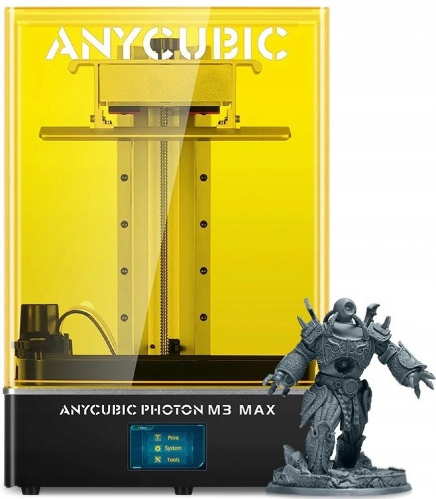 Anycubic Photon M3 Max je první resinová tiskárna s 13,6palcovým 7K monochromatickým displejem, který umožňuje tiskový prostor až 298 x 164 x 300 mm (D x Š x V). V kombinaci s vysoce přesným kuličkovým šroubem v ose Z lze vytvářet velké a vysoce přesné resinové modely.