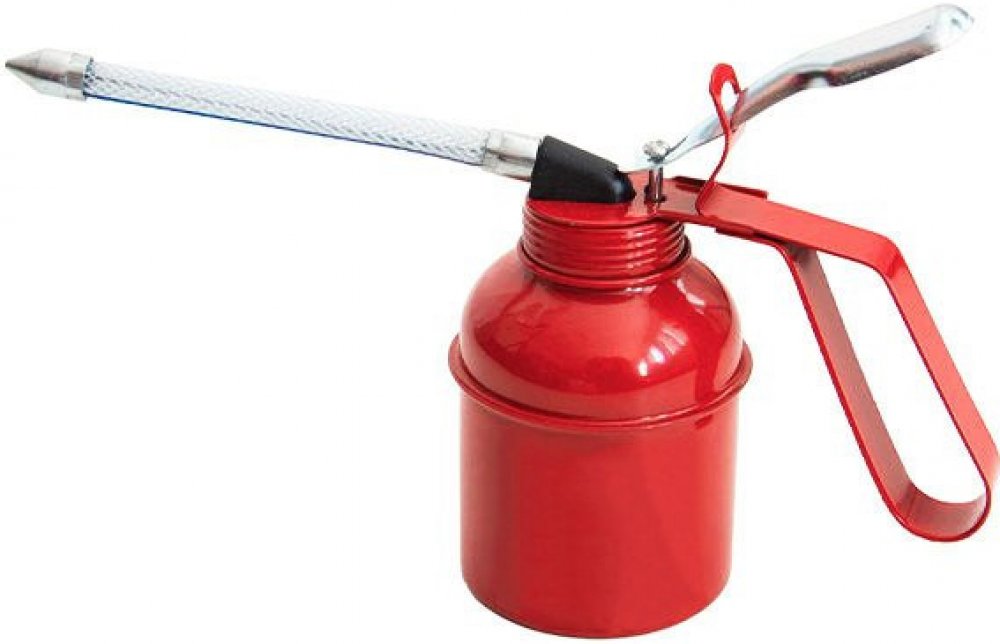 Bytelná kovová olejnice s odšroubovatelnou pružnou vyztuženou hubicí pro dávkování oleje i v obtížně přístupných místech. Kvalitní povrchová úprava, červená barva.