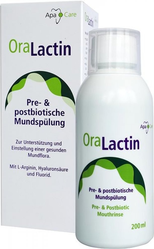 Ústní voda OraLactin obsahuje dusičnan draselný, který podporuje bakterie snižující dusičnany a regulující krevní tlak. Navíc L-arginin na ochranu před přecitlivělostí. Obsažená kyselina hyaluronová podporuje regulaci vlhkosti ústní sliznice, zmírňuje záněty a urychluje hojení intraorálních ran.