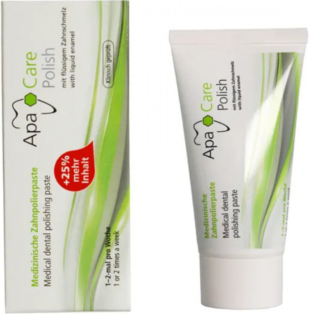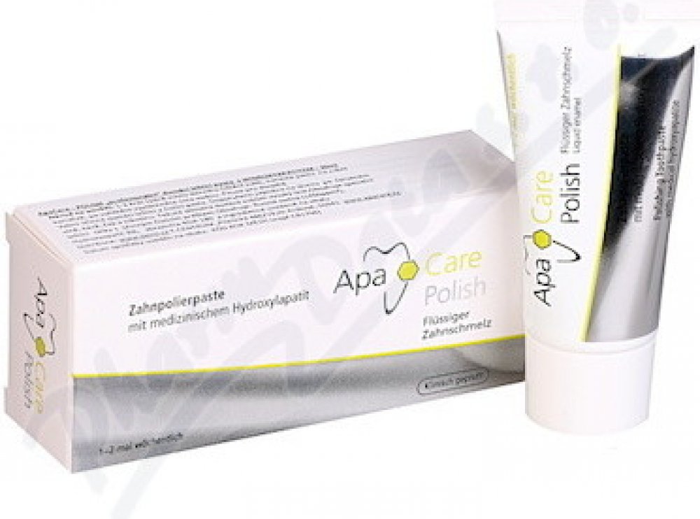 ApaCare Polish - Leštící pasta, je šetrně abrazivní (RDA cca. 180) s vysokou čistící účinností a je obohacena o 3% Hydroxyapatitu. Během čištění se částice šíří po povrchu, snížují citlivost a chrání před opětovným barvením. Doporučeno pro pacienty s rychlou schopností barvení zubů od kávy, čaje, červeného vína nebo tabáku. Obsahuje fluorid sodný (1450 ppmF), který působí preventivně proti zubnímu...