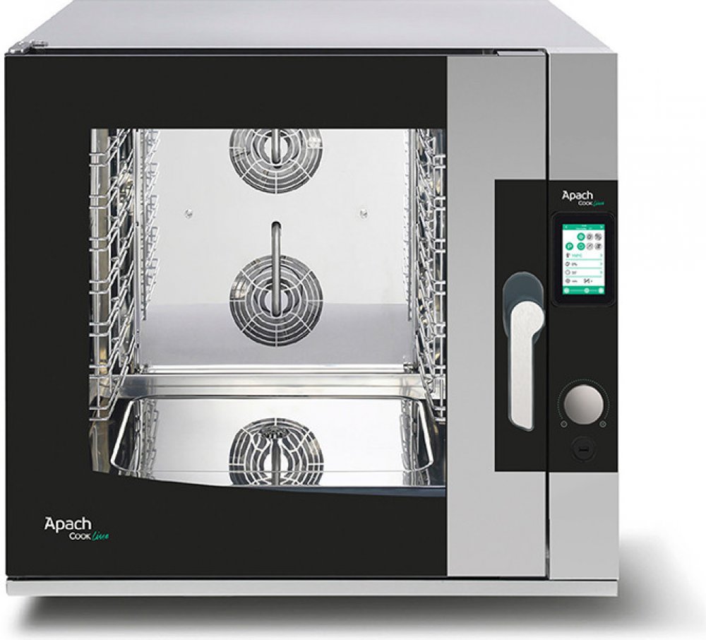 APACH COMBI STEAM OVEN AP7QT je profesionální varné zařízení, které spojuje funkce konvektomatu a parního vařiče do jednoho celku. Je vhodný pro pečení, grilování, vaření v páře, pečení, dušení, blanšírování a další. kombinovaná parní trouba je vybavena ovládacím panelem s dotykovým displejem LCD. Vícejazyčné rozhraní zajišťuje jednoduché a přehledné ovládání. Můžete si uložit až 80 receptů, stejně jako použít 40 již existujících. Recepty lze nahrát prostřednictvím USB flash disku a upravovat je podle vlastních potřeb. model je vybaven motorem ventilátoru s prodlouženou životností a automatickým samočisticím systémem. Vlastnosti parní trouby APACH COMBI AP7QT:- Manuální vaření: konvekční vaření 30-260 °C, smíšené vaření v páře a konvekci 30-230 °C, vaření v páře 35-130 °C- Dotykový ovládací panel- 120 programů s 6 varnými cykly pro každý program- Systém reverzního ventilátoru- Dvě rychlosti ventilátoru- Sonda jádra součástí dodávky- Automatický předehřev (1 úroveň, poloviční náplň, plná náplň)- Víceúrovňový: Víceúrovňový režim: All in (vaření různých receptů najednou)- Víceúrovňový: Parní konvektomat má rozměry 937x821x875 mm: All out (všechny pokrmy jsou hotové ve stejnou dobu)- Delta T vaření- Regenerace- Proofing- Automatické chlazení- Samočisticí systém- Systém oplachování bez detergentu- Digitální regulace vstřikování vody- Regulace odvodu páry- LED osvětlení integrované ve dveřích. Kapacita: 7?GN 1/1 (včetně 3 GN1/1-20). Příkon: 10,5 kW. Napětí 400 V.