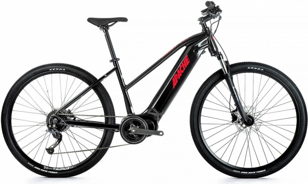 Apache horská dámská 2024 150 km se středovým motorem integrované na rámu Bafang s odpruženou přední vidlicí 60 mm kotoučové s hliníkovým rámem Bafang M400 80 Nm
