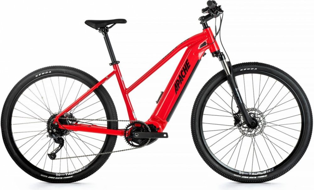 Apache horská dámská 2024 150 km se středovým motorem integrované na rámu Bafang s odpruženou přední vidlicí 60 mm Shimano MT201 s kotouči (180 / 160 mm) s hliníkovým rámem Bafang M510 95 Nm