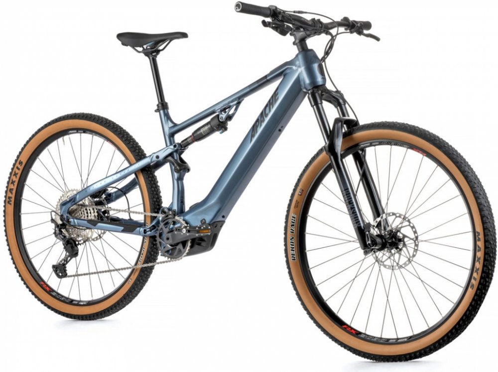 Apache horská 2025 se středovým motorem integrované na rámu Bosch celoodpružená 120 mm hydraulické 4 pístkové Shimano s hliníkovým rámem Performance Line SX 55 Nm