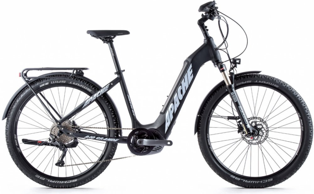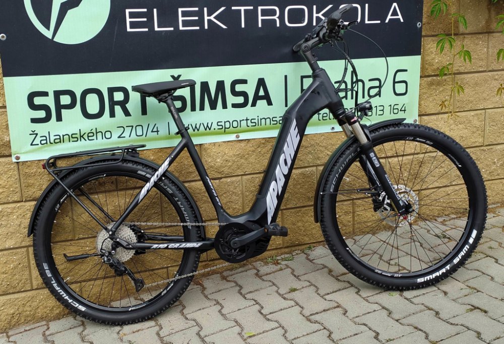 Apache horská unisex 2022 130 km se středovým motorem plně integrovaná Bosch s odpruženou přední vidlicí 80 mm kotoučové s hliníkovým rámem Bosch Performance Line CX Gen4 85 Nm