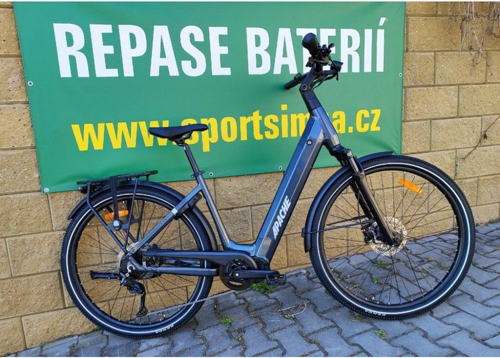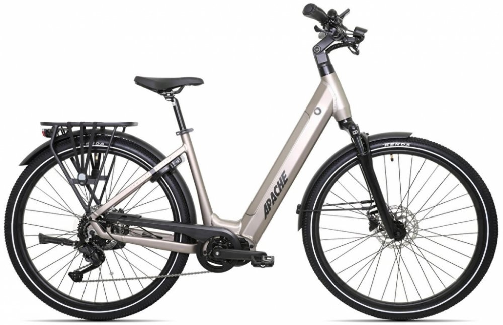 Apache trekking/cross 2025 170 km se středovým motorem integrované na rámu Bafang s odpruženou přední vidlicí 63 mm hydraulické Shimano BL-MT201 s hliníkovým rámem Bafang M410 80 Nm
