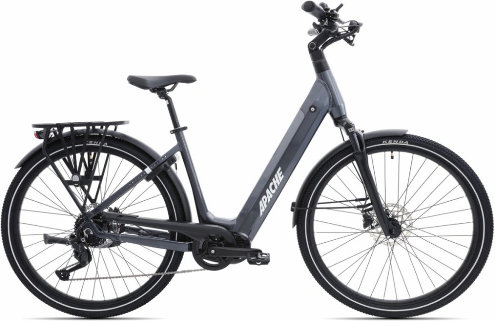 Apache trekking/cross 2025 170 km středové integrované na rámu Bafang odpružená přední vidlice 63 mm Hydraulická kotoučová brzda Shimano BL-MT201 hliníkové Bafang M410 80 Nm
