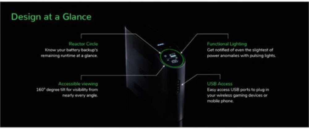 Věžová UPS 2200VA/1320W má celkem 6 zásuvek, z nichž 3 jsou záložní baterie a přepěťová ochrana a 3 jsou pouze přepěťovou ochranou. Má nárazovou energii 1080 joulů. Je vybavena automatickou regulací napětí, která koriguje poklesy a rázy napětí na správnou úroveň. Dodává se s PowerChute Serial Shutdown, snadno použitelným softwarem pro bezpečné vypnutí systému s funkcemi správy napájení a energie. Tato UPS má 3letou záruku a politiku ochrany připojeného zařízení ve výši 150 000 USD. Má 2 USB porty (Typ A + C) pro chytré nabíjení osobních zařízení.