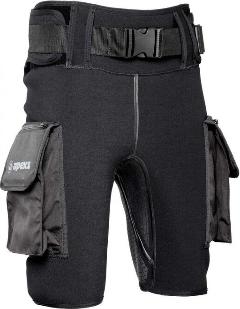 Šortky z 1,5 mm silného neoprenu můžete obléknout přes suchý nebo mokrý oblek a získat tak dvě velké kapsy na stehnech pro uložení vybavení. Můžete je také obléknout na holé tělo při potápění v teplé vodě nebo při různých vodních aktivitách.